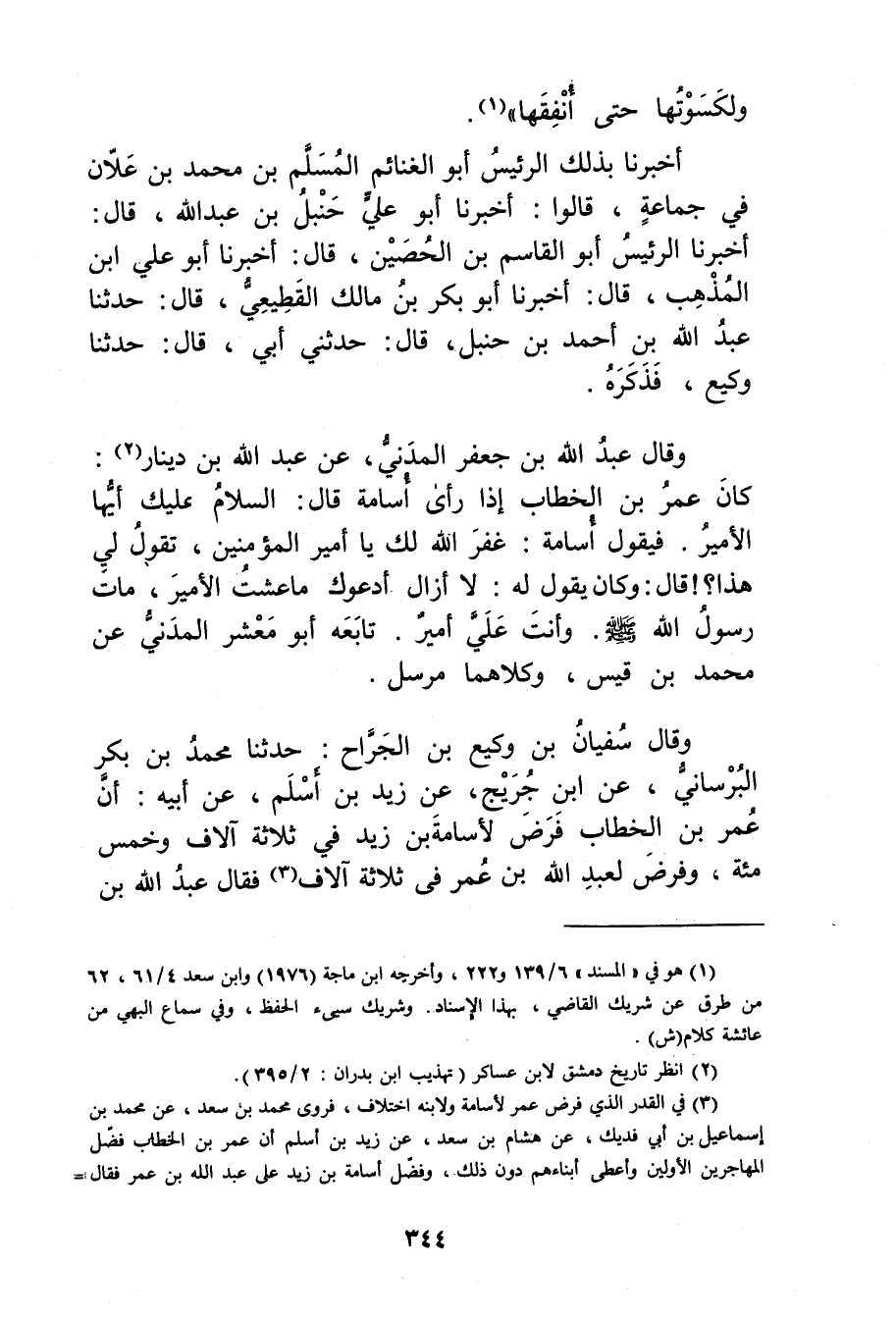 (3) في القدر الذي فرض عُمَر لاسامة ولابنه اختلاف، فروى مُحَمَّد بْن سعد، عن مُحَمَّد بْن إِسْمَاعِيل بْن أَبي فديك، عَنْ هِشَامِ بْنِ سَعْدٍ، عَنْ زيد بن أسلم أن عُمَر بن الخطاب فضل المهاجرين الاولين وأعطى أبناءهم دون ذلك، وفضل أسامة بن زيد عَلَى عَبد اللَّهِ بْن عُمَر فقال =