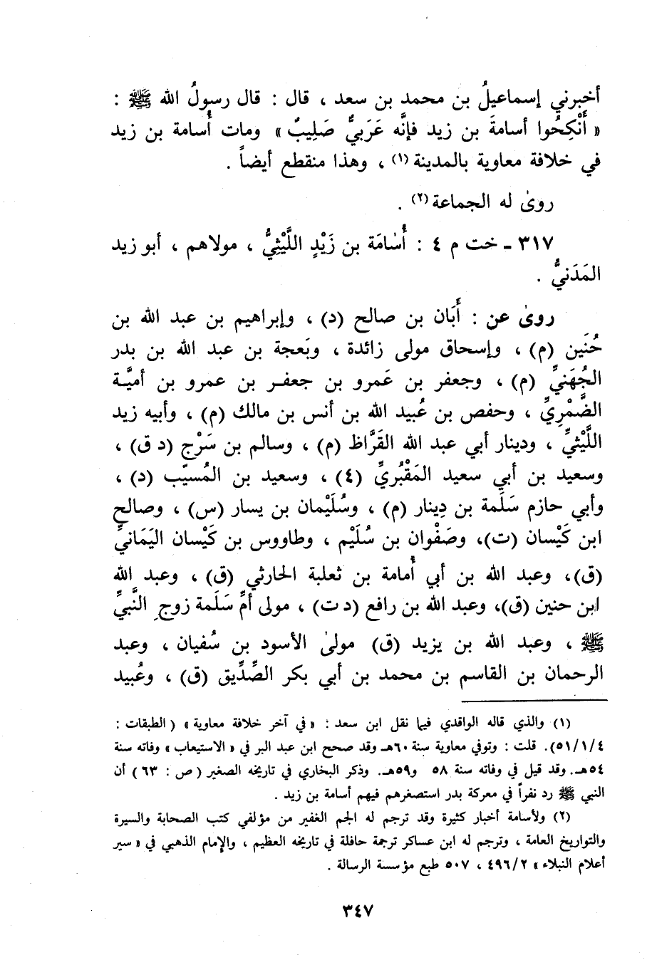 317 - خت م 4: أسامة بن زيد الليثي، مولاهم، أبو زيد المدني.