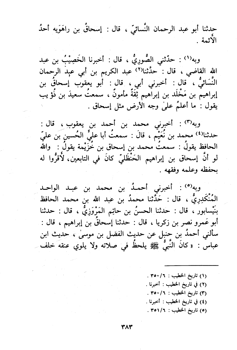 حَدَّثَنَا أبو عَبْد الرحمن النَّسَائي، قال: إسحاق بْن راهويه أحد الأئمة.