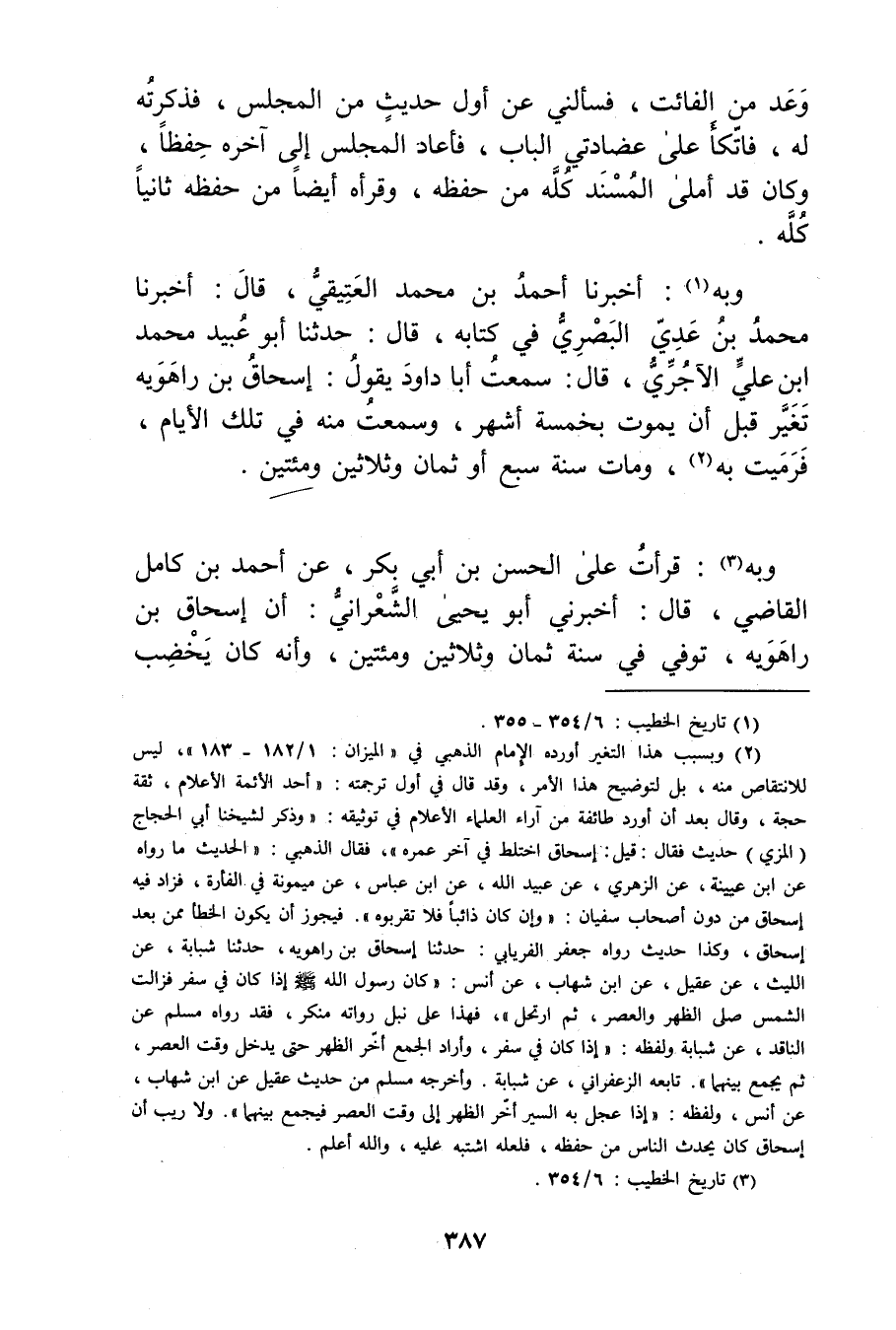 (1) تاريخ الخطيب: 6 / 354 - 355.