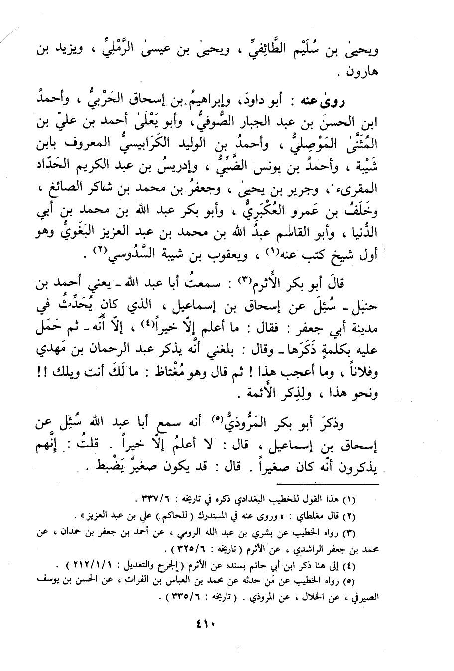 (5) رواه الخطيب عَنْ مَنْ حَدَّثَهُ عَنْ مُحَمَّدِ بن العباس بن الفرات، عن الحسن بن يوسف الصيرفي، عن الخلال، عن المروذي. (تاريخه: 6 / 335) .