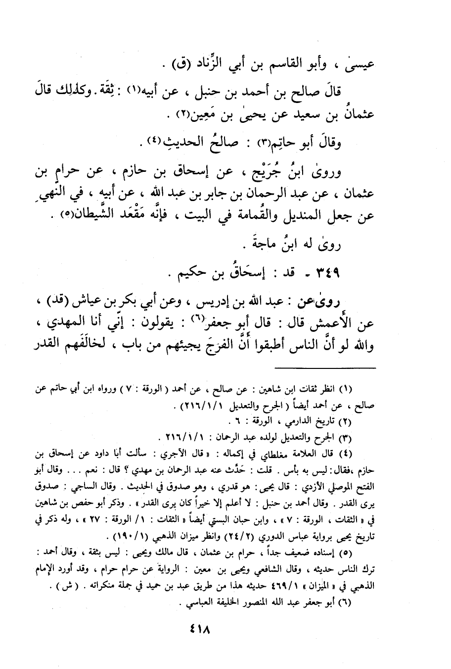(1) انظر الثقات ابن شاهين: عن صالح، عن أحمد (الورقة: 7) ورواه ابن أَبي حاتم عن صالح، عن أحمد أيضا (الجرح والتعديل: 1 / 1 / 216) .
