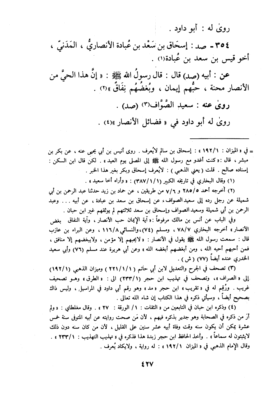 354 - صد: إسحاق بن سعد بن عبادة الأَنْصارِيّ، المدني،