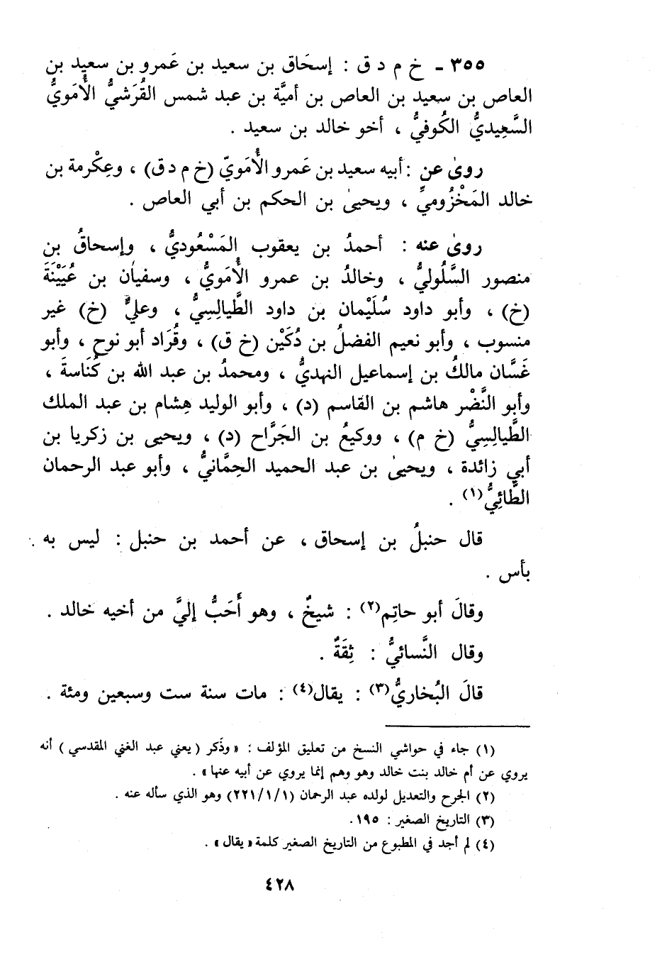 355 - خ م د ق: إسحاق بن سَعِيد بْن عَمْرو بْن سَعِيد بن العاص بن سَعِيد بن العاص بن أمية بن عَبْد شمس القرشي الأُمَوِي السَعِيدي الكوفي، أخو خالد بْن سَعِيد.