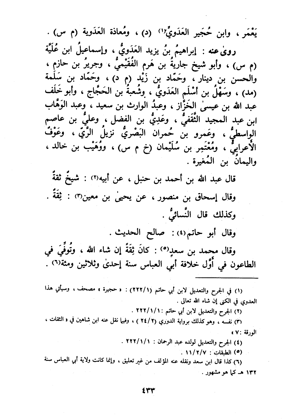 (1) في الجرح والتعديل لابن أَبي حاتم (1 / 222) : حجيرة"مصحف، وسيأتي هذا العدوي في الكنى إن شاء الله تعالى.