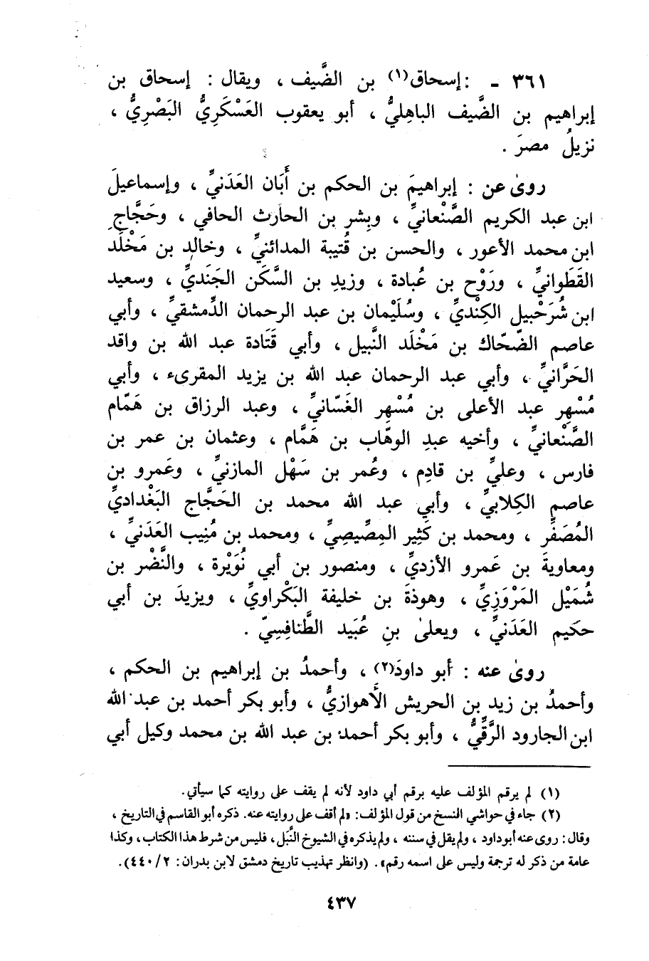 361: إسحاق (1) بن الضيف، ويُقال: إسحاق بْن إِبْرَاهِيم بْن الضيف الباهلي، أبو يعقوب العسكري، البَصْرِيّ، نزيل مصر.