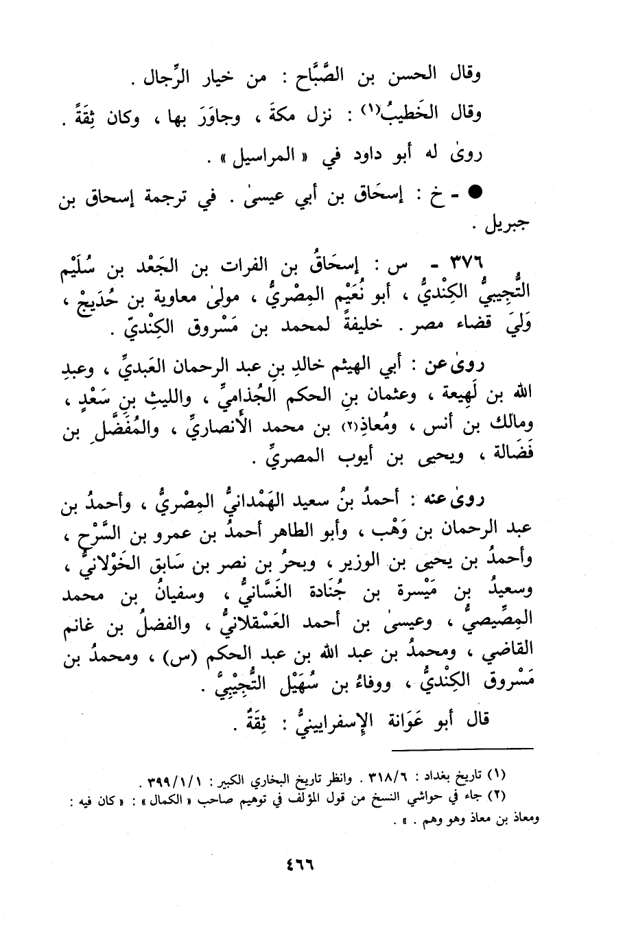 (1) تاريخ بغداد: 6 / 318. وانظر تاريخ البخاري الكبير: 1 / 1 / 399.