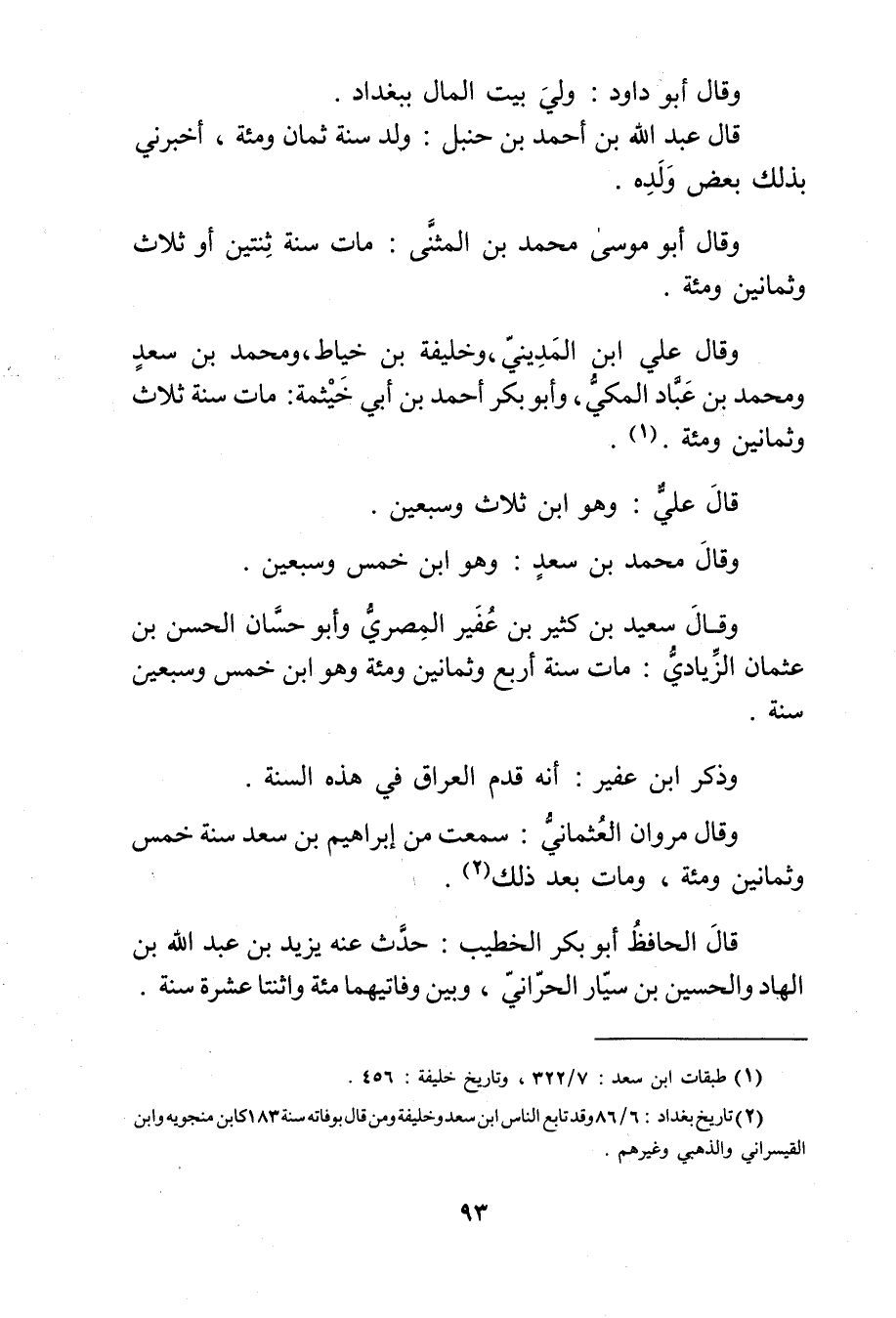 (2) تاريخ بغداد: 6 / 86 وقد تابع الناس ابن سعد وخليفة ومن قال بوفاته سنة 183 كابن منجويه وابن القيسراني والذهبي وغيرهم.