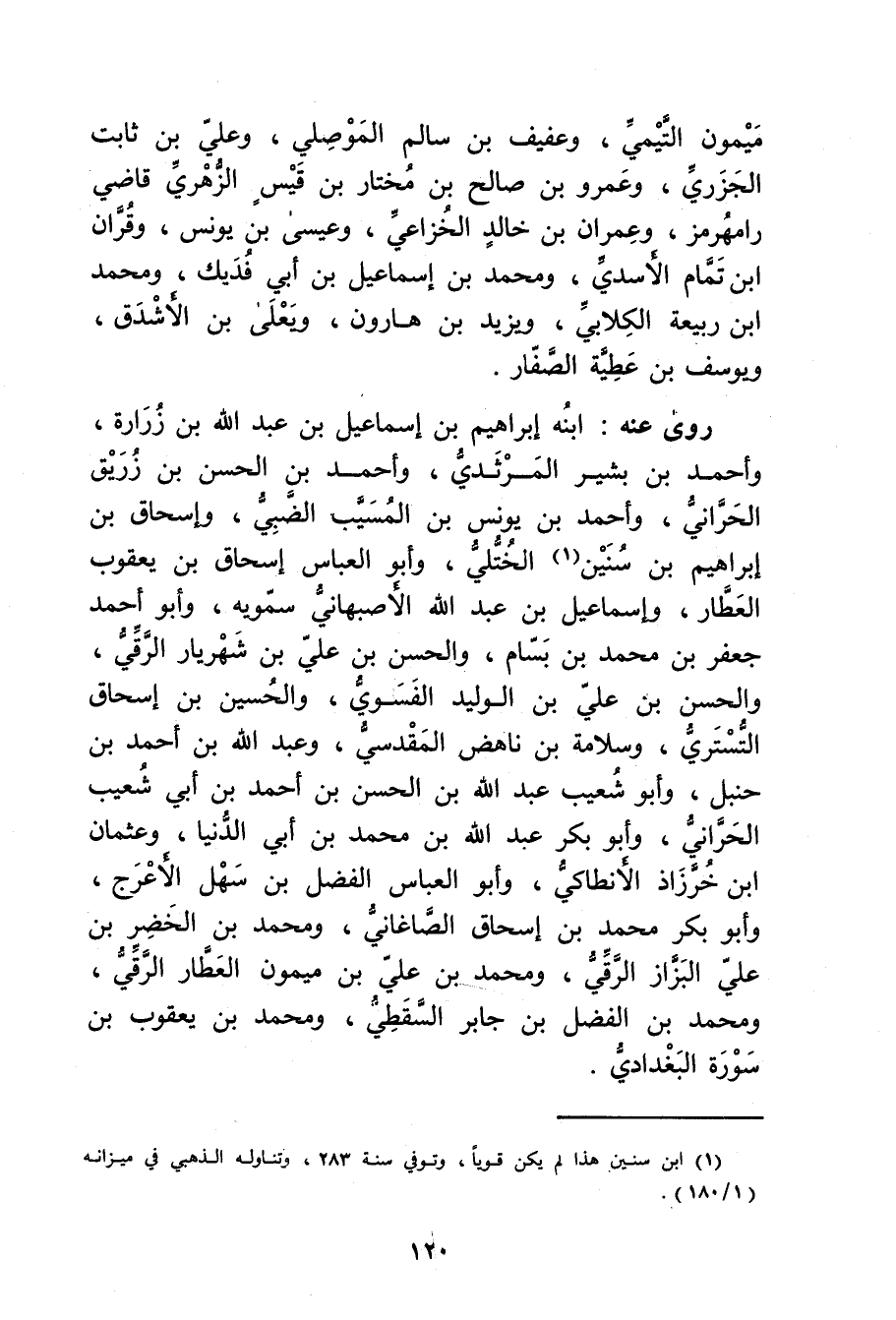 (1) ابن سنين هذا لم يكن قويا، وتوفي سنة 283، وتناوله الذهبي في ميزانه (1 / 180) .