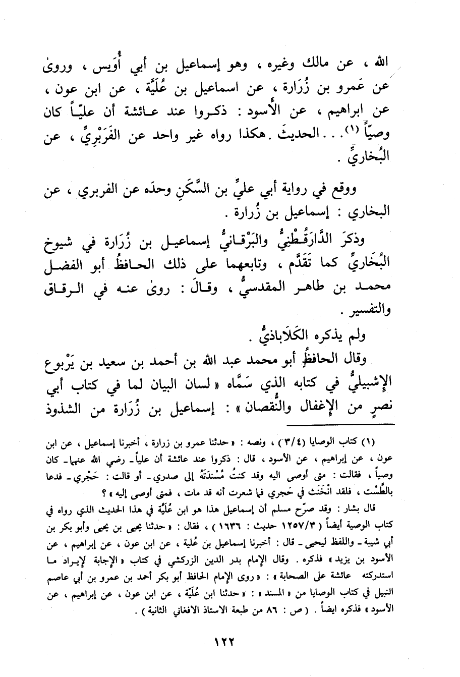 وَقَال الحافظ أَبُو مُحَمَّد عَبد اللَّهِ بْن أَحْمَد بْن سَعِيد بْن يربوع الإشبيلي فِي كتابه الَّذِي سماه"لسان البيان لما فِي كتاب أبي نصر من الإغفال والنقصان": إِسْمَاعِيل بْن زرارة من الشذوذ