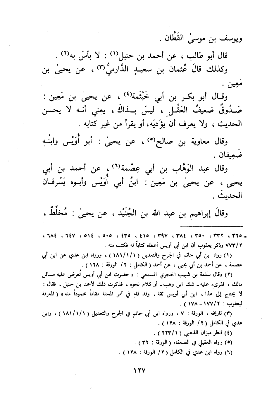 (1) رواه ابن أَبي حاتم في الجرح والتعديل (1 / 1 / 181) ، ورواه ابن عدي عَنِ ابن أَبي عصمة، عن أَحْمَد بْن أَبي يَحْيَى، عن أحمد (الكامل: 2 / الورقة: 128) .