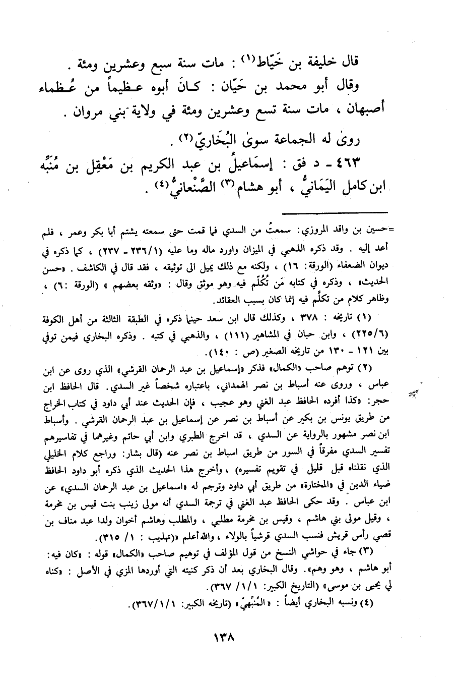 (3) جاء في حواشي النسخ من قول المؤلف في توهيم صاحب"الكمال قوله: كان فيه: أبو هاشم، وهو وهم". وقَال البُخارِيُّ بعد أن ذكر كنيته التي أوردها المزي في الاصل: كناه لي يحيى بن موسى" (التاريخ الكبير: 1 / 1 / 367) .