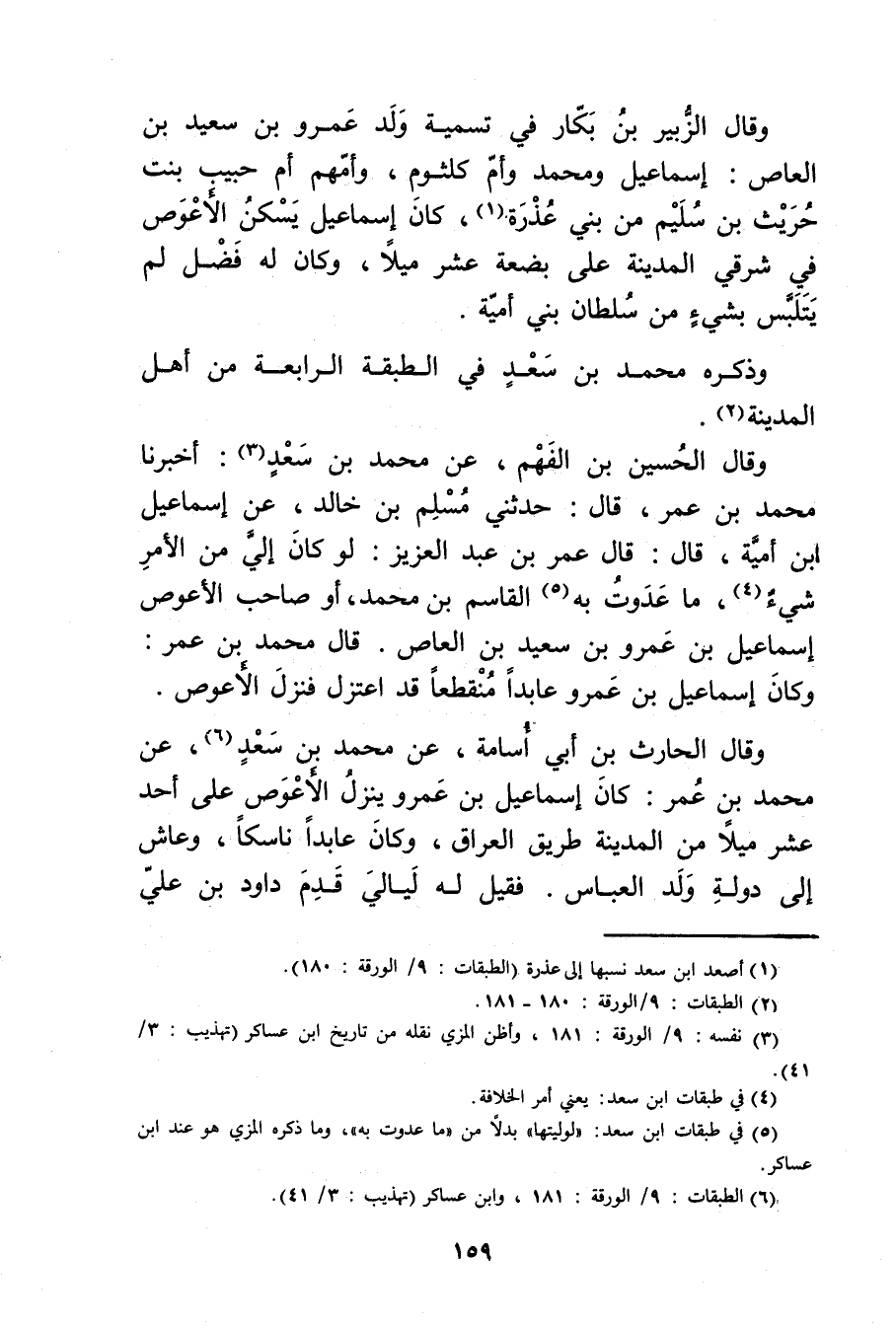 (6) الطبقات: 9 / الورقة: 181، وابن عساكر (تهذيب: 3 / 41) .