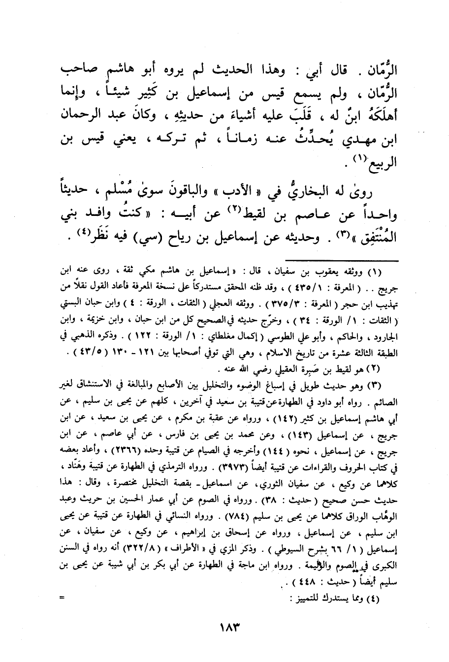 (1) ووثقه يعقوب بن سفيان، قال: إسماعيل بن هاشم مكي ثقة، روى عنه ابن جريح.. (المعرفة: 1 / 435) ، وقد ظنه المحقق مستدركا على نسخة المعرفة فأعاد القول نقلا من تهذيب ابن حجر (المعرفة: 3 / 375) . ووثقه العجلي (الثقات، الورقة: 4) وابن حبان البستي (الثقات: 1 / الورقة: 34) ، وخرج حديثه في الصحيح كل من ابن حبان، وابن خزيمة، وابن الجارود، والحاكم، وأبو علي الطوسي (إكمال مغطاي: 1 / الورقة: 122) ، وذَكَره الذهبي في الطبقة الثالثة عشرة من تاريخ الاسلام، وهي التي توفي أصحابها بين 121 - 130 (5 / 43) .