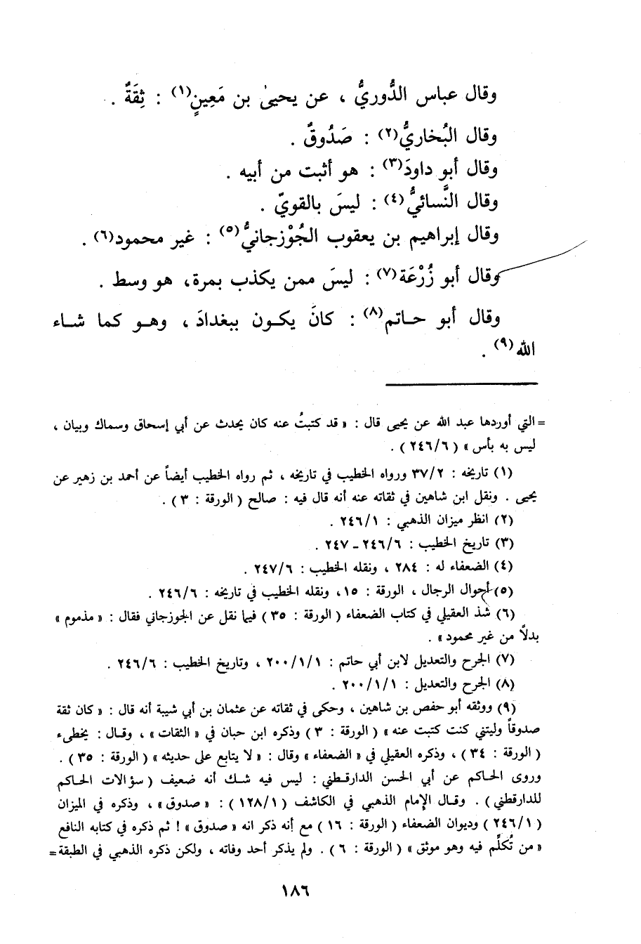(5) أحوال الرجال، الورقة: 15، ونقله الخطيب في تاريخه: 6 / 246.