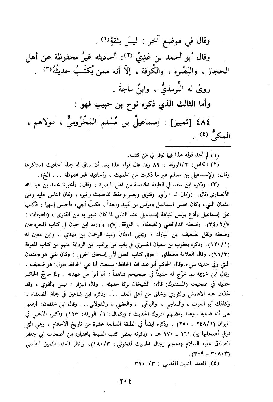 (484) تمييز: إِسْمَاعِيل بن مسلم المخزومي، مولاهم، المكي (4) .