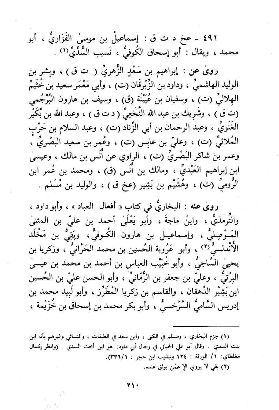 (491) - عخ د ت ق: إِسْمَاعِيل بن موسى الفزاري، أَبُو مُحَمَّد، ويُقال: أَبُو إِسْحَاق الكوفي، نسيب السدي (1) .