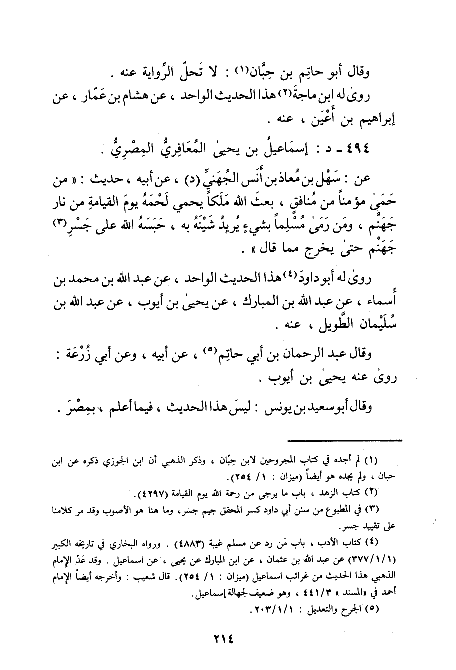 (494) - د: إِسْمَاعِيل بن يَحْيَى الْمَعَافِرِيّ المِصْرِي.