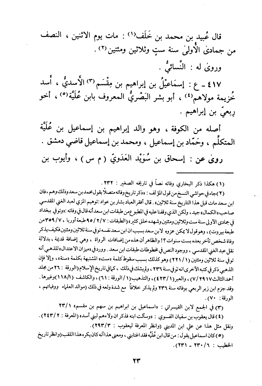 (417) - ع: إِسْمَاعِيل بْن إِبْرَاهِيم بْن مقسم (3) الأسدي، أسد خزيمة مولاهم (4) ، أَبُو بشر البَصْرِيّ المعروف بابن علية (5) ، أخو ربعي بْن إِبْرَاهِيم.