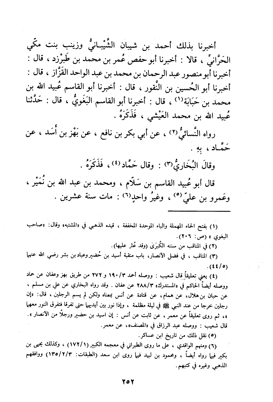رواه النَّسَائي (2) عَن أبي بكر بْن نافع، عن بهز بْن أسد، عن حماد، به.