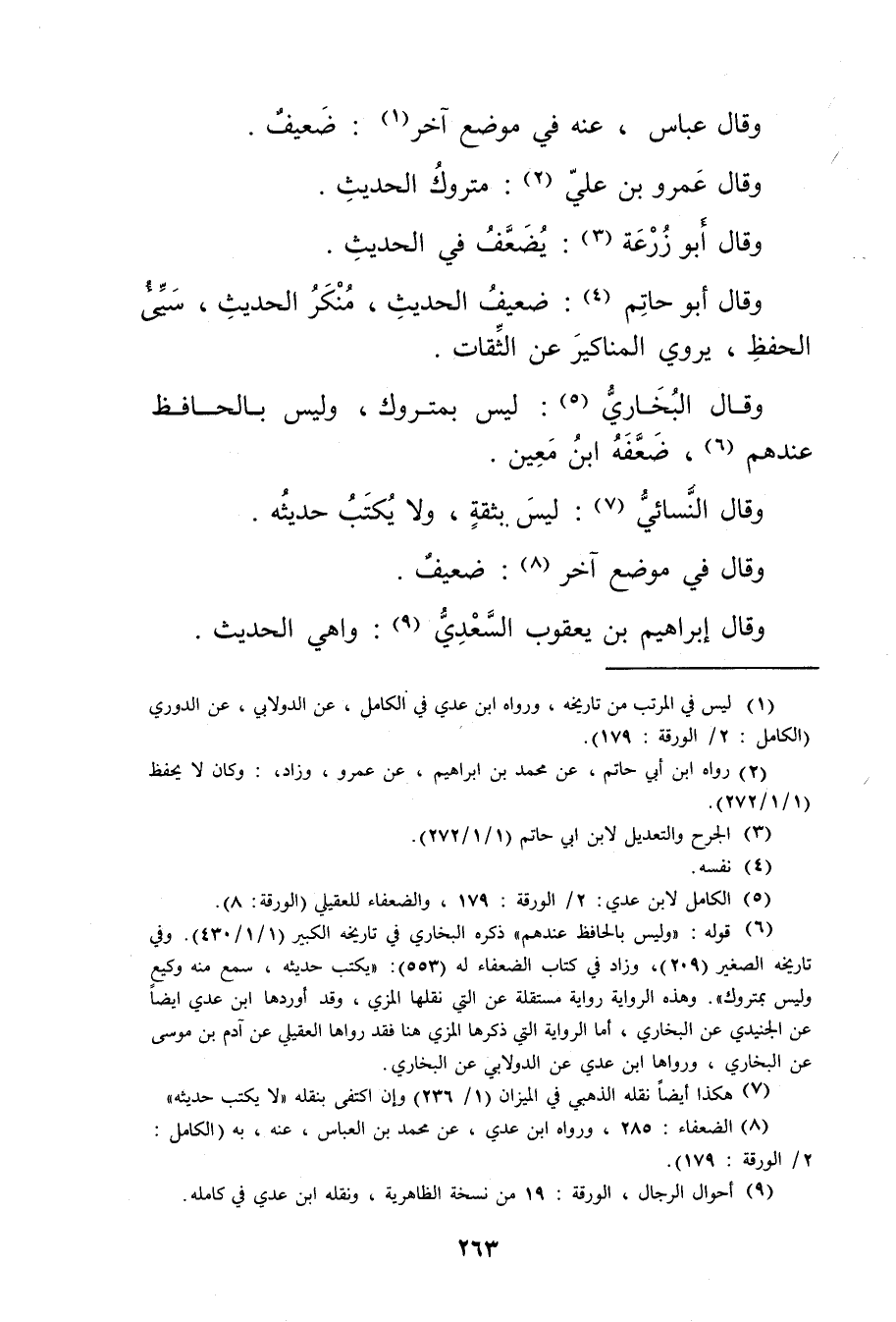 (9) أحوال الرجال، الورقة: 19 من نسخة الظاهرية، ونقله ابن عدي في كامله.