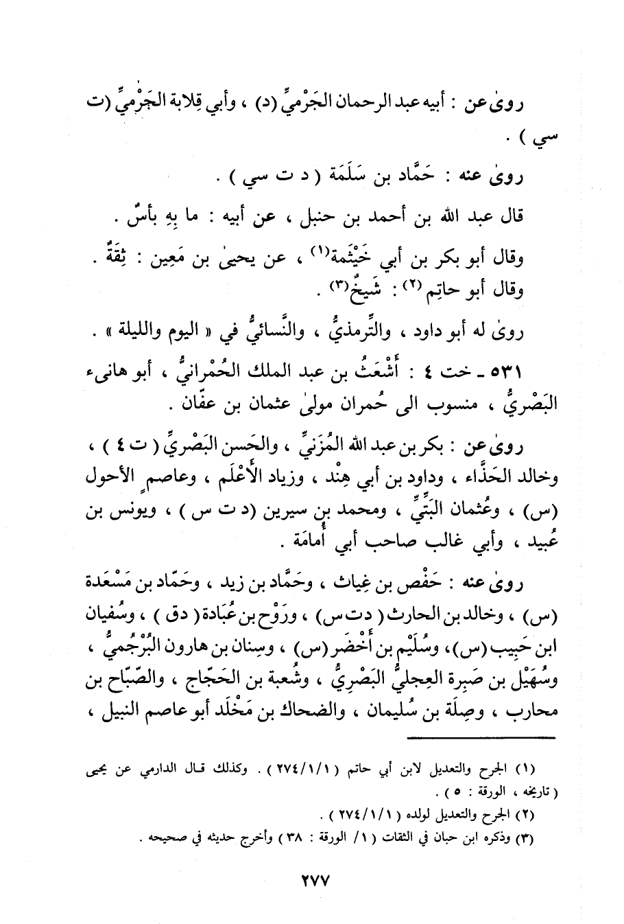 (531) - خت 4: أشعث بن عَبد المَلِك الحمراني، أَبُو هانئ البَصْرِيّ، منسوب إِلَى حمران مولى عثمان بْن عفان.