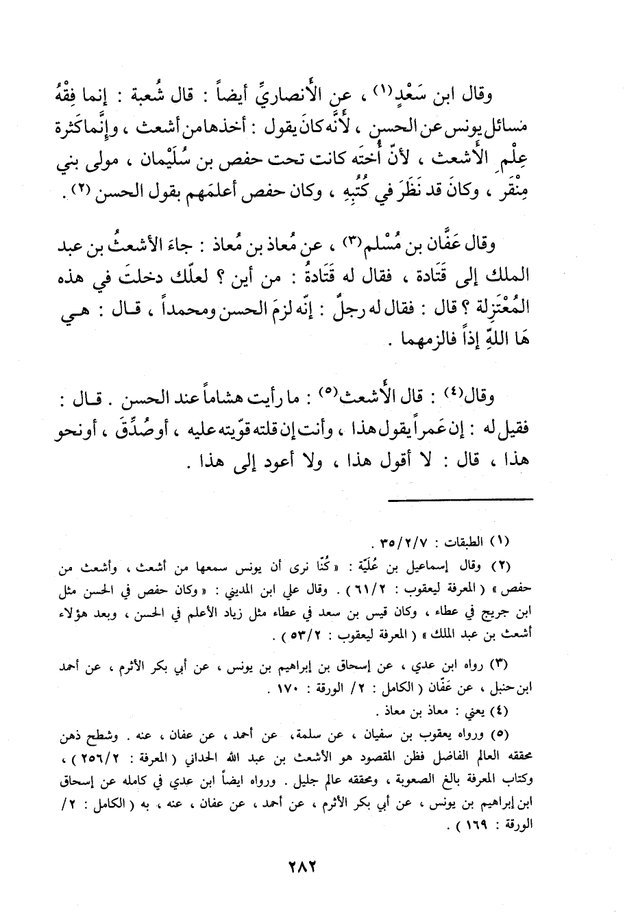 (2) وَقَال إسماعيل بن علية: كنا نرى أن يونس سمعها من أشعث، وأشعث من حفص" (المعرفة ليعقوب: 2 / 61) . وَقَال علي ابن المديني: وكان حفص في الحسن مثل ابن جُرَيْج في عطاء، وكان قيس بن سعد في عطاء مثل زياد الاعلم في الحسن، وبعد هؤلاء أشعث بن عبد الملك" (المعرفة ليعقوب: 2 / 53) .