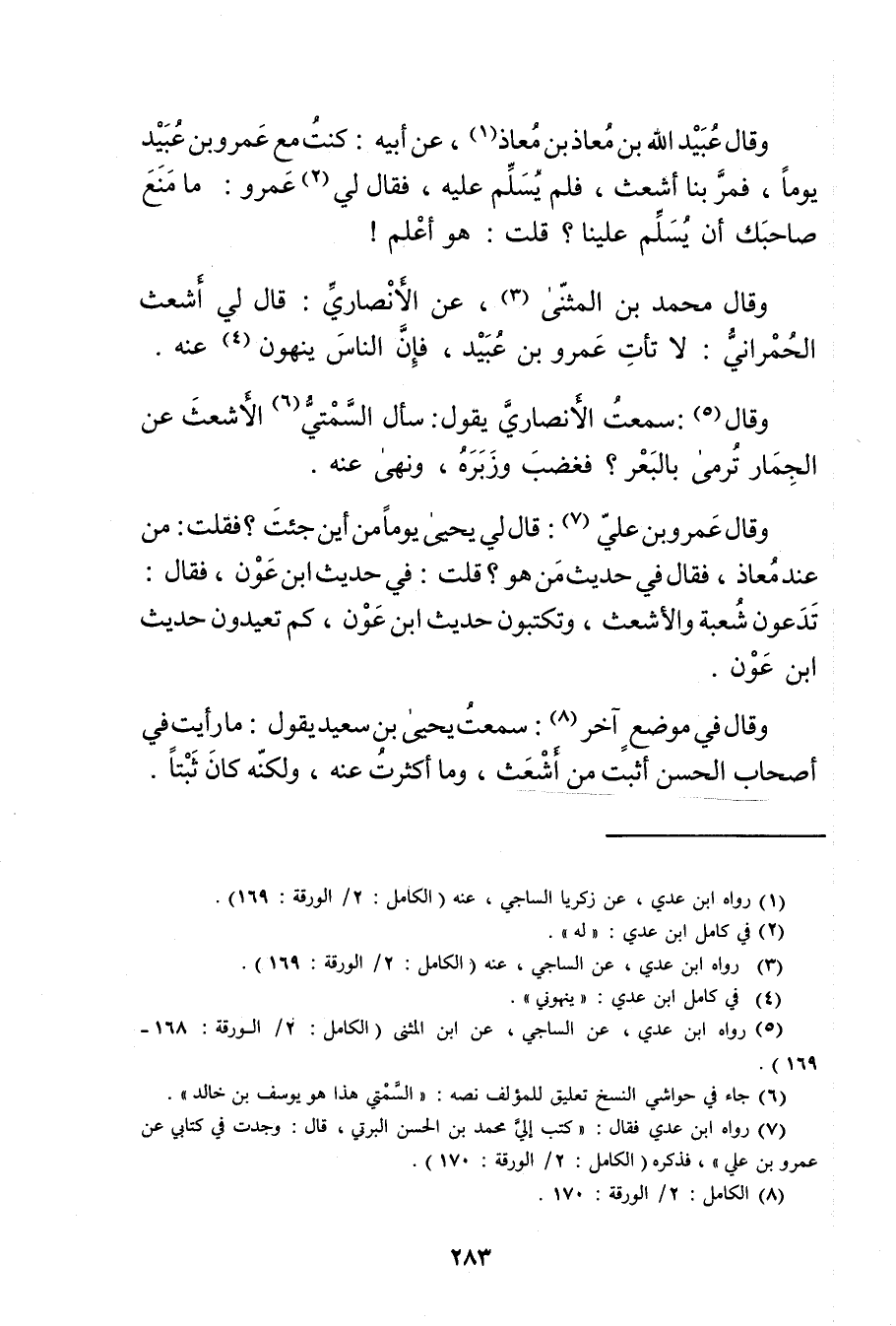 (7) رواه ابن عدي فقال: كتب إلي محمد بن الحسن البرتي، قال: وجَدْتُ فِي كِتَابِي عَنْ عَمْرو بن علي"فذكره (الكامل: 2 / الورقة: 170) .