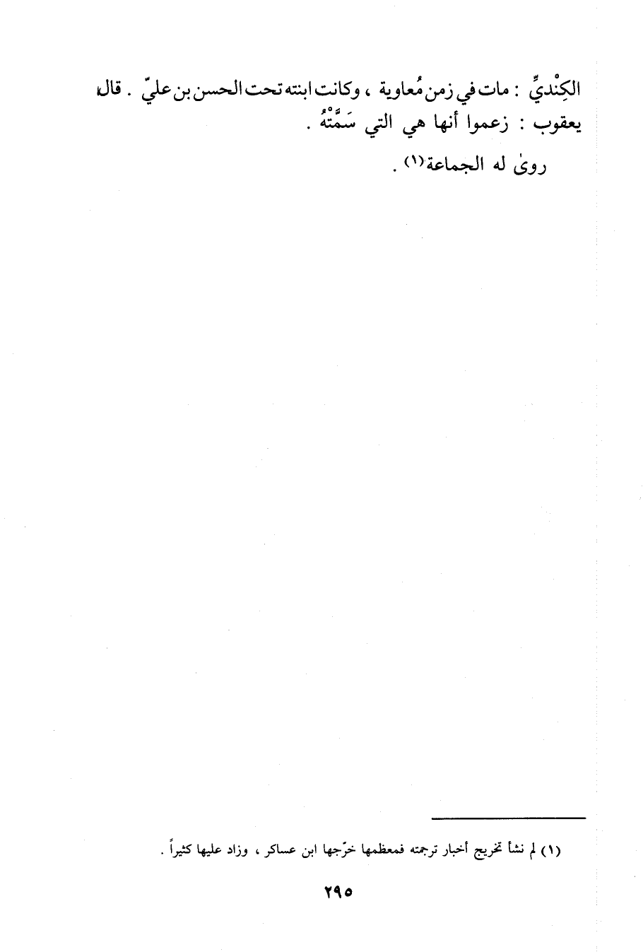 الكندي: مات فِي زمن مُعَاوِيَة، وكَانَتِ ابْنَتُهُ تَحْتَ الْحَسَنِ بْنِ علي. قال يعقوب: زعموا أنها هي التي سمته.