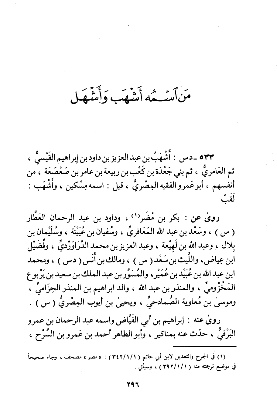 (1) في الجرح والتعديل لابن أَبي حاتم (1 / 1 / 342) : مصر"مصحف، وجاء صحيحا في موضع ترجمته منه (1 / 1 / 392) ، وسيأتي.