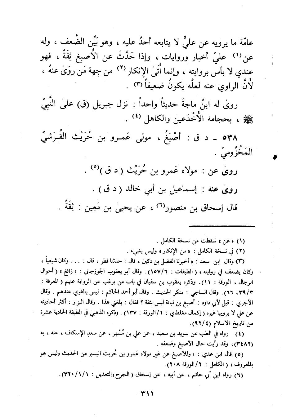 (5) قال ابن عدي: وللاصبغ عن غير مولاه عَمْرو بن حريث اليسير من الحديث وليس هو بالمعروف" (الكامل: 2 / الورقة 208) .