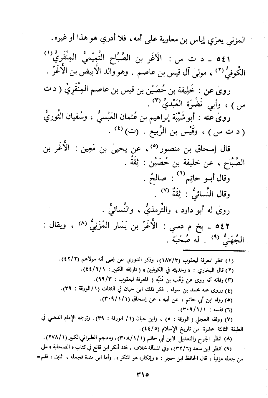 (542) - بخ م دسي: الأَغَر بن يسار المزني (8) ، ويُقال: الجهني (9) .