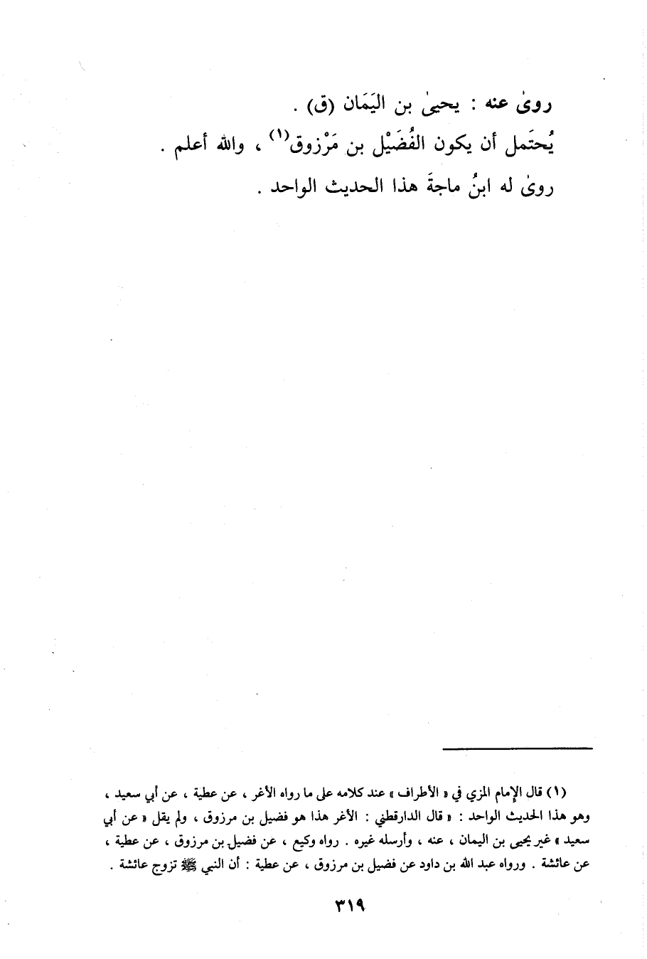 (1) قال الإمام المزي في "الاطراف" عند كلامه على ما رواه الأَغَر، عَنْ عطية، عَن أبي سَعِيد، وهو هذا الحديث الواحد: قال الدارقطني: الأَغَر هذا هو فضيل بن مرزوق، ولم يقل"عَن أبي سَعِيد"غير يحيى بن اليمان، عنه، وأرسله غيره. رواه وكيع، عن فضيل بن مرزوق، عن عطية، عن عائشة. ورواه عَبد الله بن داود عن فضيل بن مرزوق، عن عطية: أن النبي صلى الله عليه وسلم تزوج عائشة.