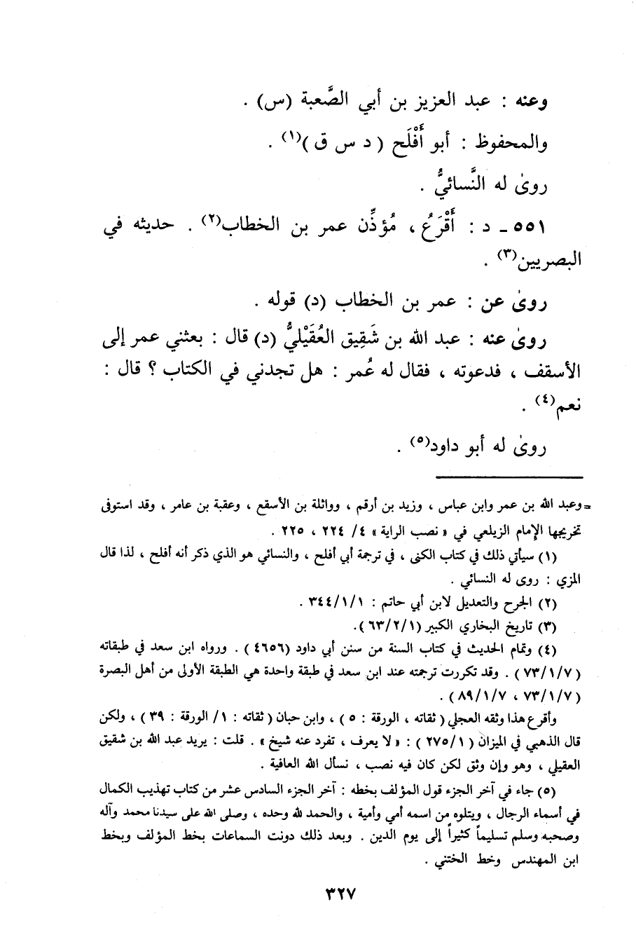(1) سيأتي ذلك فِي كتاب الكنى، فِي ترجمة أبي أفلح، والنَّسَائي هو الذي ذكر أنه أفلح، لذا قال المزي: روى له النَّسَائي.