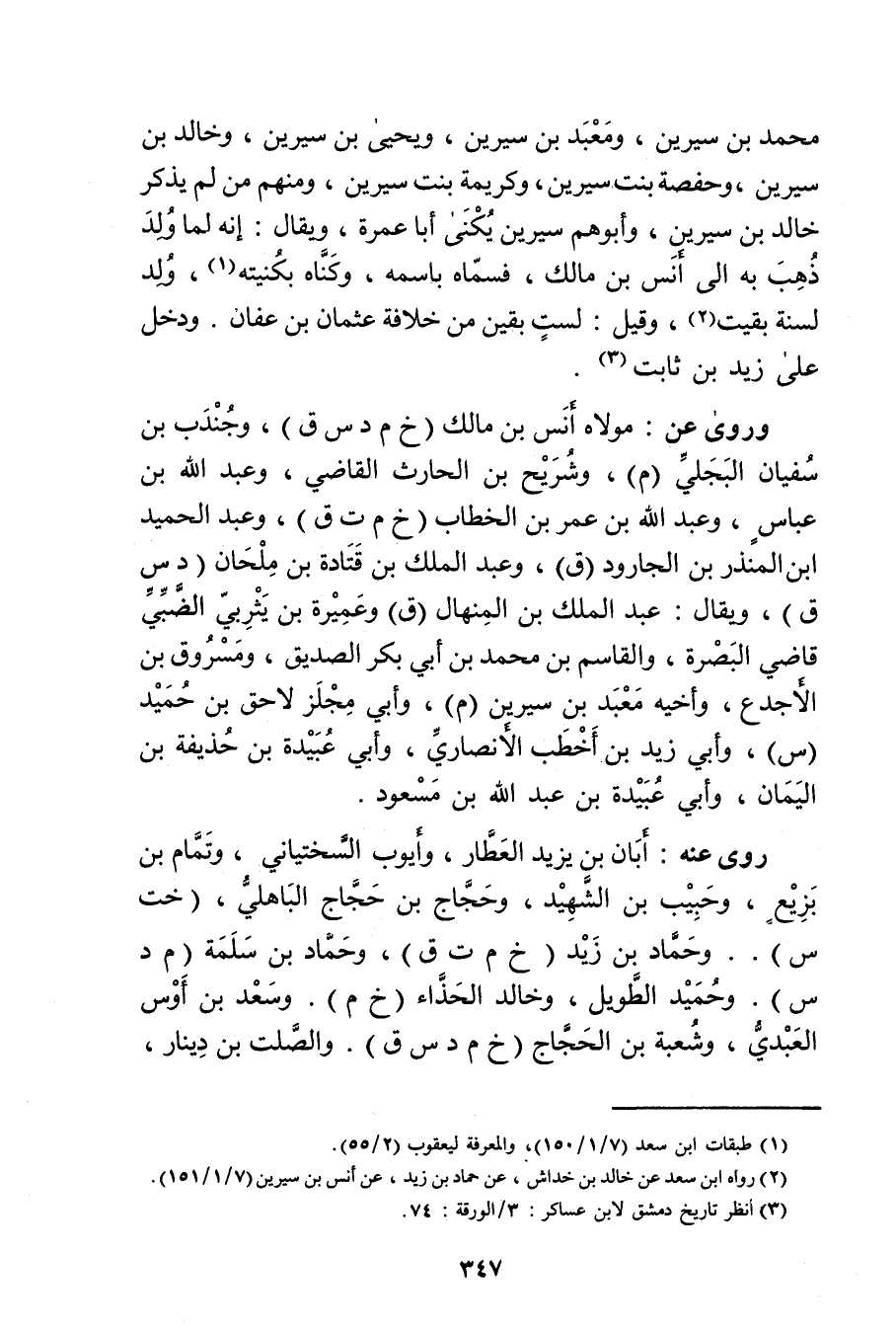 (2) رواه ابن سعد عن خالد بن خداش، عن حماد بن زيد، عن أنس بن سيرين (7 / 1 / 151) .