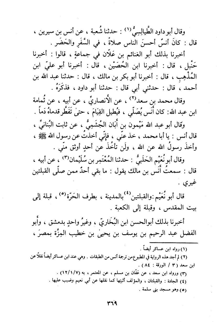 (2) لم أجد هذه الرواية في المطبوع من ترجمة أنس من الطبقات. وهي عند ابن عساكر أيضا نقلا عن ابن سعد (3 / الورقة: 84) .
