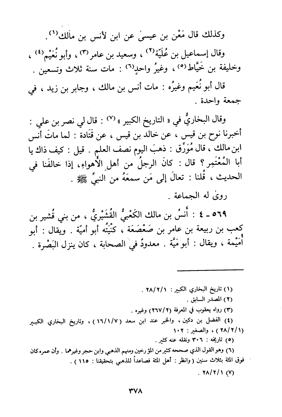 (6) وهو القول الذي صححه كثير من المؤرخين ومنهم الذهبي وابن حجر وغيرهما. وأن عُمَره كان فوق المئة بثلاث سنين (وانظر: أهل المئة فصاعدا للذهبي بتحقيقنا: 115) .