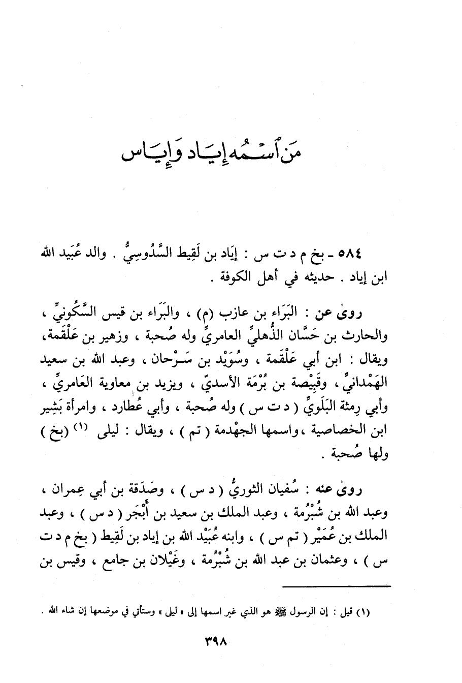 (584) - بخ م د ت س: إياد بن لقيط السدوسي. والد عُبَيد اللَّه بْن إياد. حديثه فِي أهل الكوفة.