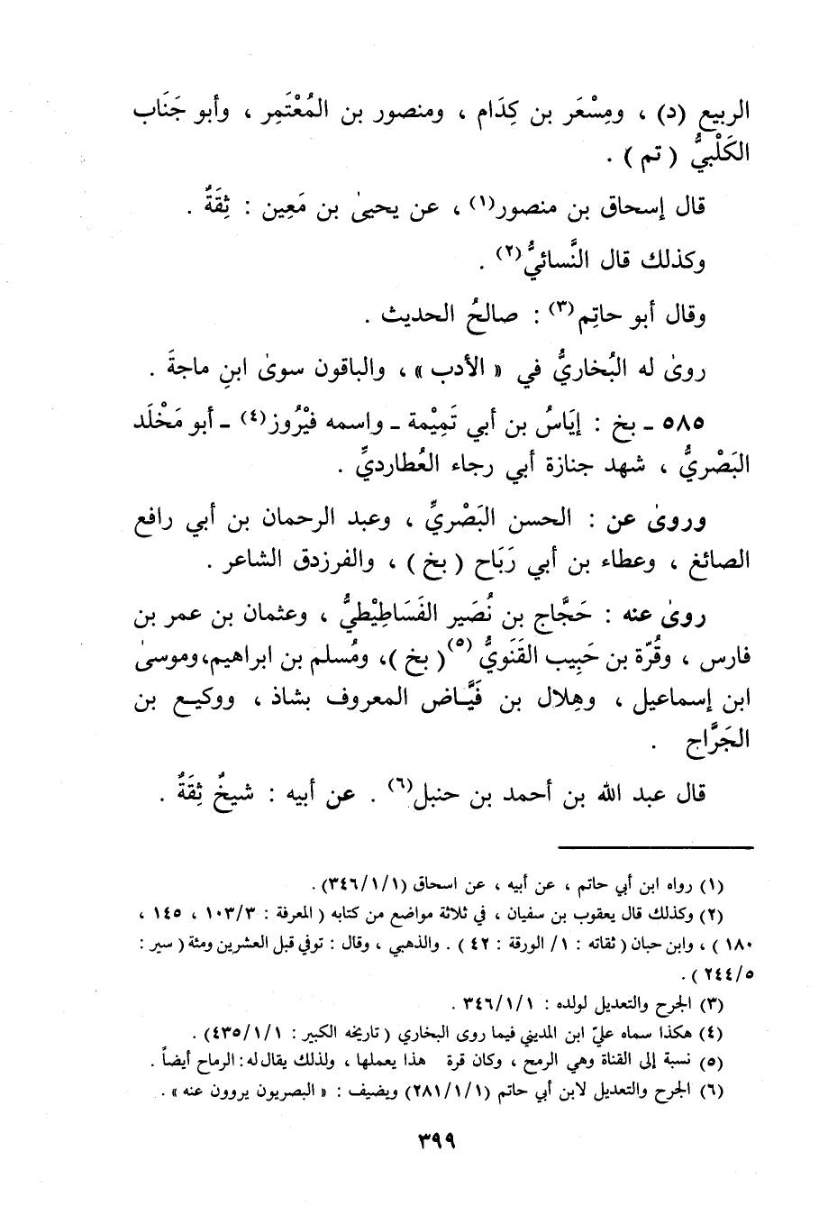 (6) الجرح والتعديل لابن أَبي حاتم (1 / 1 / 281) ويضيف: البَصْرِيّون يروون عنه".