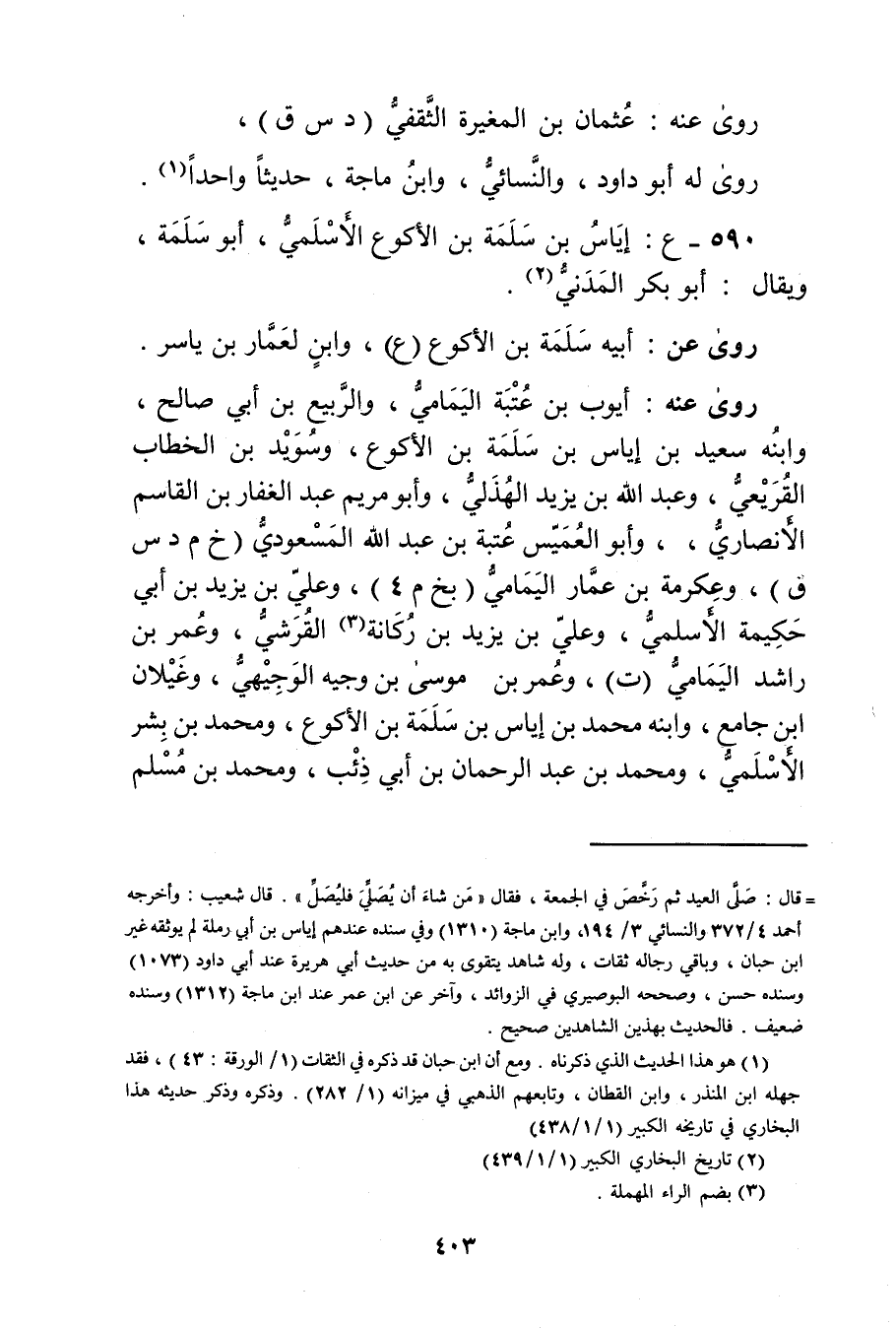 (590) - ع: إياس بن سلمة بن الأكوع الأَسلميّ، أَبُو سلمة، ويُقال: أَبُو بكر المدني (2) .