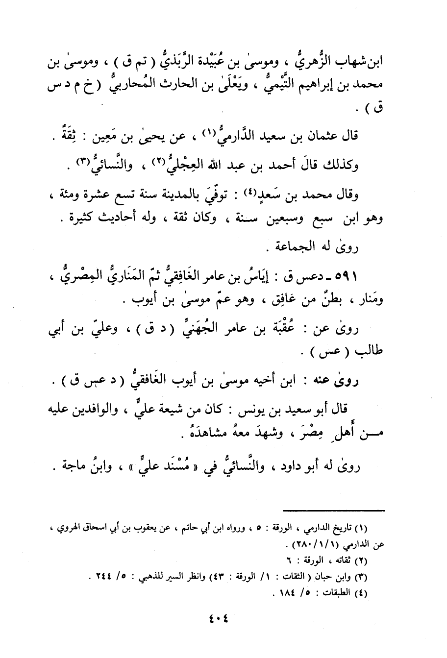 (1) تاريخ الدارمي، الورقة: 5، ورواه ابن أَبي حاتم، عن يعقوب بن أَبي إسحاق الهروي، عن الدارمي (1 / 1 / 280) .