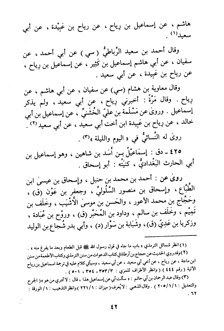 (3) وَقَال عَبْد الرَّحْمَنِ بْن أَبي حاتم: سَأَلتُ أبي عن إِسْمَاعِيل هذا، قال: لا أدري من هو" (الجرح والتعديل: 1 / 1 / 205) . وَقَال الذهبي: لا يعرف (الميزان: 1 / 221) وانظر التذهيب: 1 / الورقة: 62.