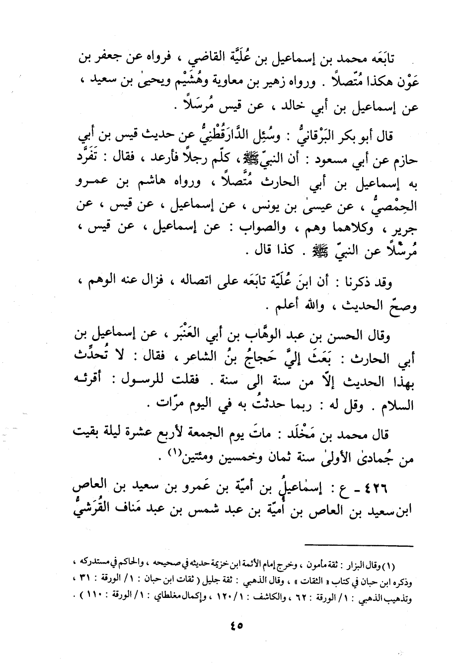 تابعه محمد بن إسماعيل بن علية القاضي، فرواه عن جعفر بْن عون هكذا متصلا، ورواه زهير بْن مُعَاوِيَة وهشيم ويحيى بْن سَعِيد، عن إِسْمَاعِيل بْن أَبي خَالِد، عن قيس مُرْسلاً.