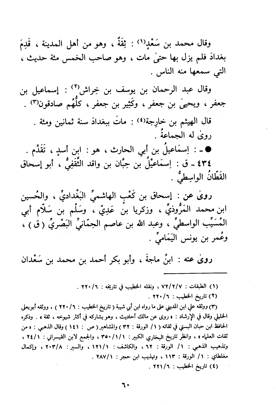 (1) الطبقات: 7 / 2 / 72، ونقله الخطيب في تاريخه: 6 / 220.