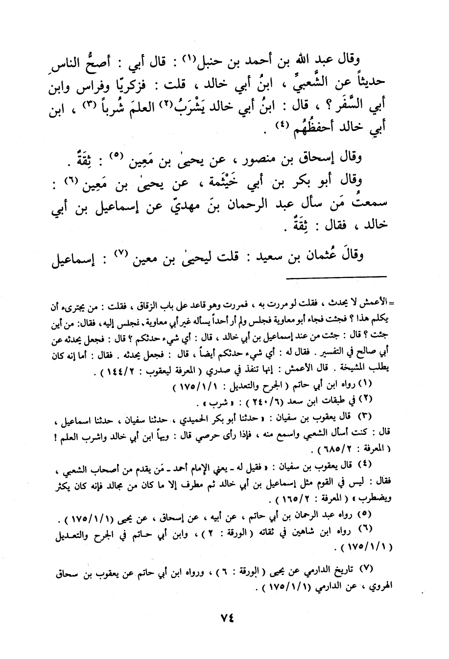 (4) قال يعقوب بن سفيان: فقيل له، يعني الإمام أحمد - من يقدم من أصحاب الشعبي، فقال: ليس في القوم مثل إسماعيل بن أَبي خالد ثم مطرف إلا ما كان من مجالد فإنه كان يكثر ويضطرب" (المعرفة: 2 / 165) .