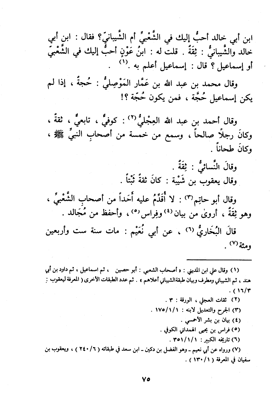 وَقَال مُحَمَّد بْن عَبد الله بْن عمار الموصلي: حجة، إذا لم يكن إِسْمَاعِيل حجة، فمن يكون حجة؟ ! وَقَال أَحْمَد بْن عَبد اللَّهِ العجلي (2) : كوفي، تابعي، ثقة، وكَانَ رجلا صالحا، وسمع من خمسة من أصحاب النَّبِيّ صَلَّى اللَّهُ عَلَيْهِ وسَلَّمَ، وكَانَ طحانا.