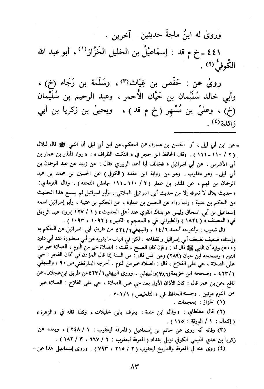 (441) - خ م قد: إِسْمَاعِيل بن الخليل الخزاز (1) ، أَبُو عَبْد اللَّهِ الكوفي (2) .