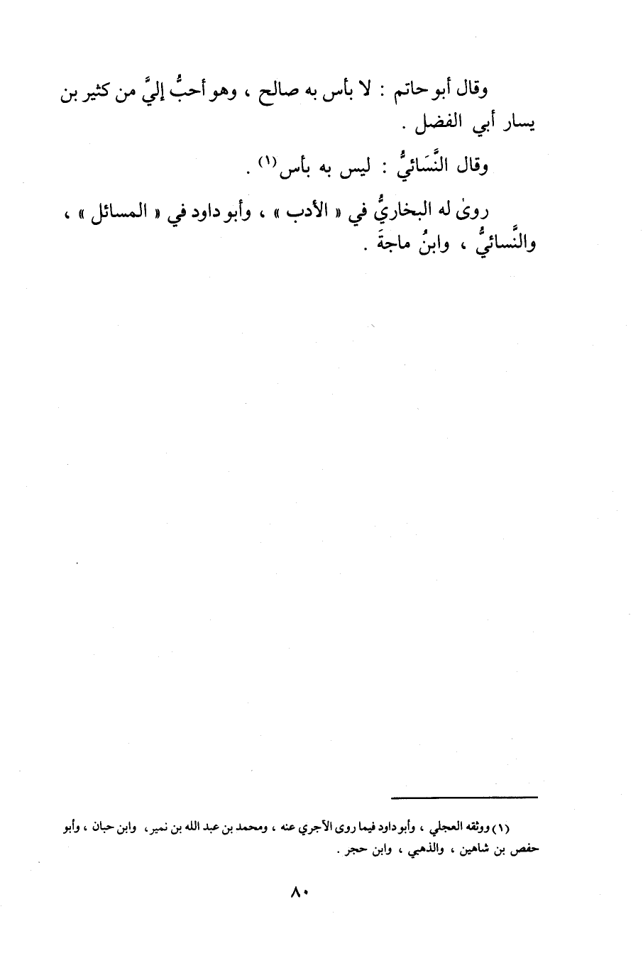 وَقَال أَبُو حَاتِم: لا بأس بِهِ صالح، وهو أحب إلي من كثير بْن يسار أبي الفضل.