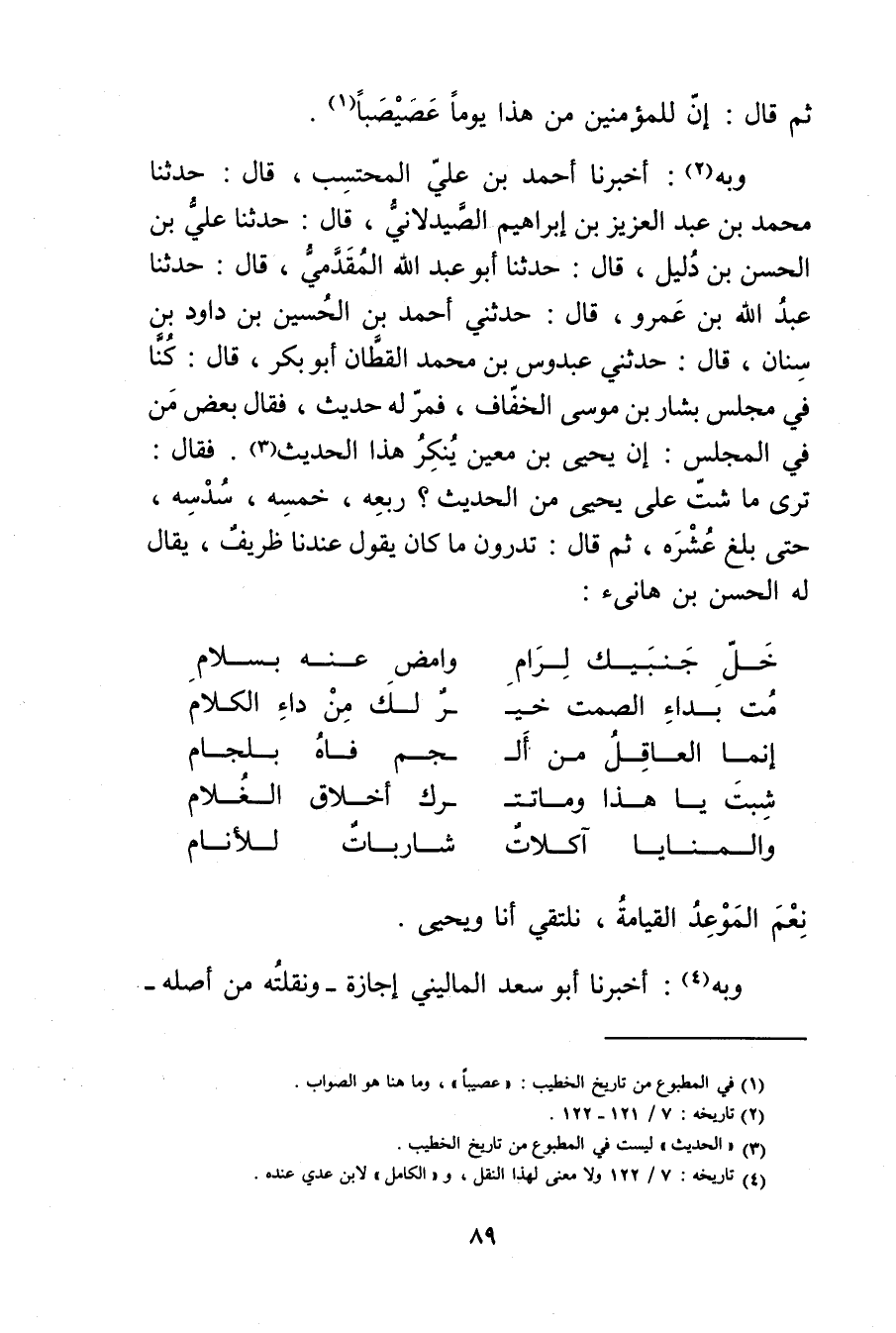 (3) "الحديث"ليست في المطبوع من تاريخ الخطيب.