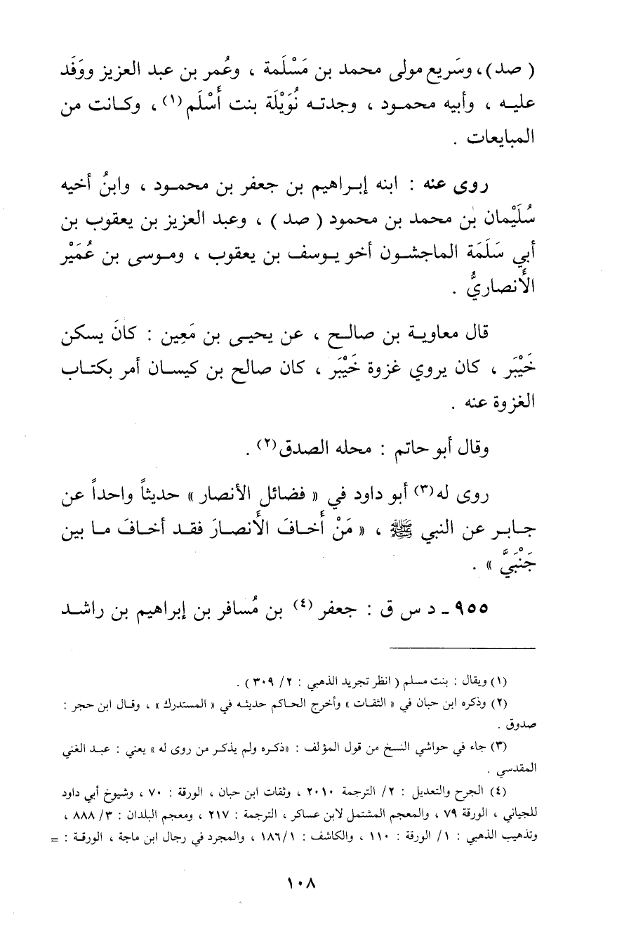 955 د س ق: جعفر بن مسافر بن إبراهيم (4) بن راشد